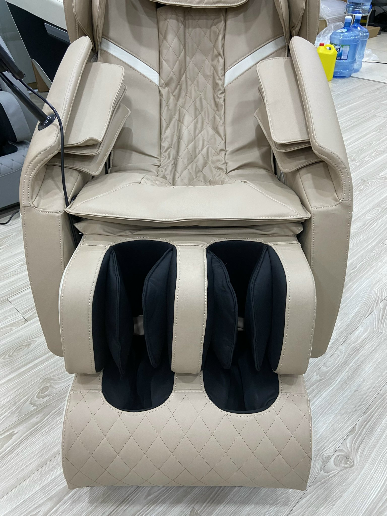 – Con lăn massage 3D di chuyển chạy dọc theo sống lưng từ cổ tới vùng mông, có bi xoay massage lòng bàn chân.